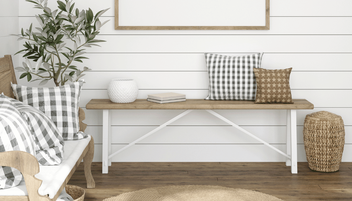 You don’t have to upgrade all of the walls in your house because a single accent wall can transform an entire room. Shiplap, including your own makeshift shiplap, pairs well with all other farmhouse staples.